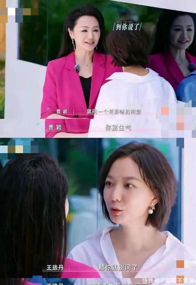 当时啊,王珞丹先出场,紧接着曹颖就登场了。按常理,两人刚见面,找个话题聊聊天很正常,可曹颖这话题找得就很让人不舒服了。她大概是想活跃气氛,或者是想掌控一下场面,毕竟曾经是主持人嘛。她就问王珞丹说自己老被人叫错名字,当成瞿颖,然后就想问王珞丹一个问题,还提前说“你别生气”。明眼人一看就知道,这问题十有八九是不太合适的。果不其然,电视机前的观众都能猜到她要问啥,刚见面的嘉宾问这种问题,真的是有点越界了。